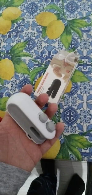 A quick rechargeable handheld heat sealer that keeps snacks fresh and prevents waste for home, camping, and travel.